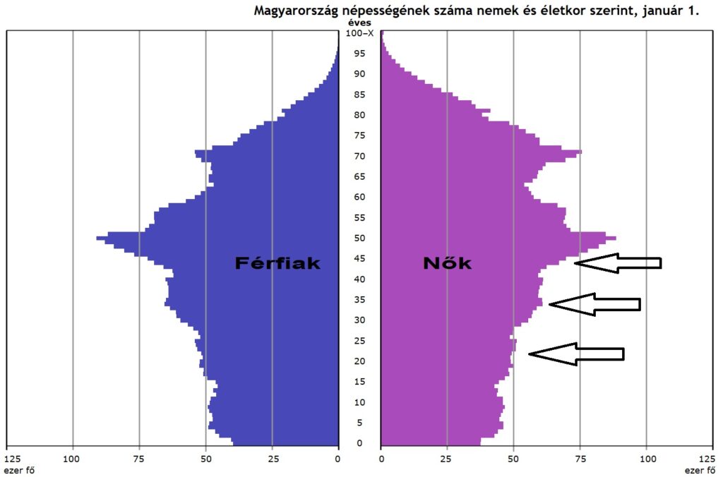 Magyarországon a házasodási korba lépő generációk létszáma jól láthatóan és tartósan csökken. Jelenleg a 32 éves nők korosztálya még 58–60 ezer fő körül alakul, azonban a kilencvenes évek közepétől kezdődően már csak évi mintegy 50 ezer lány született – ők ma 25–26 évesek. A fiatalabb évjáratok esetében a csökkenés tovább folytatódik: a mai 20 éves korosztály létszáma már csupán körülbelül 48 ezer fő.